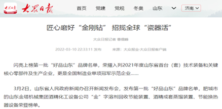 歷經多年的拼搏創新,金塔已經成為規?;⒊商谆⒓夹g化及節能化的酒精生產及廢液處理裝備專業制造商,是《酒精蒸餾塔》 《糠醛水解鍋》《糠醛蒸餾塔》等國家行業標準的制定者。以“金”字為商標的酒精生產及其節能環保設備是國內客戶尤其是知名大型酒業公司信賴的品牌,與中國酒業的龍頭企業 五糧液集團三次合作,深得好評和信賴,與天冠集團、阜豐集團、吉良集團等大型燃料乙醇巨頭攜手,推動了燃料乙醇技術裝備的進步,向國內28個省市區近2000家客戶提供了產品和技術服務,建立了深厚的合作基礎,并出口東南亞、東歐、非洲、南美等多個國家。